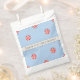 Favor tags with red and white lollipop pattern on blue background