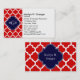 Red, White Moroccan #5 Navy 3 Initial Monogram Business Card