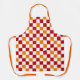 Great color and even though I ordered the kid size, it covers well enough to use during the holidays. I am not a big woman and prefer a shorter apron. I stand 5"6" and the length of the garment goes to mid-thigh. The tie straps fit well at my waist and even though there is no neck strap adjustment, the opening is plenty big enough. I am happy with the size and fit. I am sharing my apron with my 10 year old grandson, too! The color is vibrant and looks good, as shown on the website. The stitching looks strong and reinforced. Photographed is front side and back side of the apron, reinforced straps and coloring. My phone camera may not be the best at showing the details.