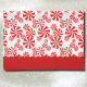 A red and white peppermint candy holiday pattern kitchen towel with deep red borders.