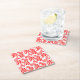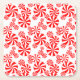Festive red and white peppermint swirl candy in an allover pattern on a paper coaster.