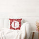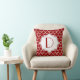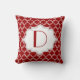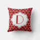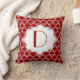 Red, white quatrefoil pattern girly throw/toss accent decorative pillow or cushion with modern Moroccan lattice trellis pattern with monogram in a grey frame.