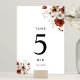 Red & White Rustic Watercolor Floral Wedding Table Number