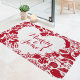 This rug is just as pictured! Vibrant Red and very soft material, nice to step in out of the tub! Matches my set of accessories and shower curtain! A must have to add some whimsy to your bathroom! Very nice, vibrant and clear print! Beautiful!