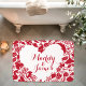 Celebrate love with this red and white sea creatures couples heart monogram bath mat. This design features a heart-shaped frame made of various sea creatures, offering space for personalization. This plush and absorbent product is visually appealing and provides a comfortable and safe surface. Enhance your home with this unique, personalized accent.