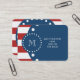 Red White Stripes Pattern, Navy Blue Monogram Business Card
