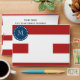 Red White Stripes Pattern, Navy Blue Monogram Envelope