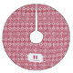 Add a rustic touch to your holiday decor with our red and white Christmas tree skirt. Design features a Nordic sweater inspired pattern with your single initial monogram and family name.