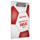 This soccer team colors clipboard for a boy's or girl's soccer coach features the image of an abstractly oversized red and white soccer ball upon which you can customize coach's name plus the school and mascot name and school year/season - by katz_d_zynes