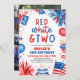 Red, White & Two 4th July 2nd Photo Birthday Party Invitation