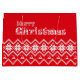 Festive large Christmas gift bag in bright red featuring a white Nordic-style, "ugly sweater" knit pattern with snowflakes, reindeer, and a "Merry Christmas" message. Perfect for wrapping holiday gifts for friends, family, and secret Santa. Great for winter themes, cozy gifts, and Christmas parties. Durable paper bag with handles.