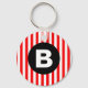 Red White Vertical Stripes Black Monogram Keychain