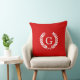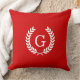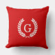 Red White Wheat Laurel Wreath Initial Monogram Throw Pillow