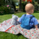 This is a baby blanket designed for a girl, featuring a beautiful pattern. The pattern consists of red and yellow wildflowers scattered across the fabric. In addition to the floral design, the blanket is also personalized with the baby's name.