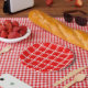 Red Windowpane Plaid Grid Stripes Pattern Design Paper Plates
