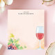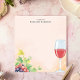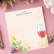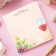 Celebrate the simple pleasures with this elegant, personalized notepad. A classic illustration featuring a glass of red wine and a cluster of grapes with vine leaves adorns the lower portion of the notepad. The soft, warm-toned background adds a touch of sophistication. Add your own custom text to make this a unique and practical item. Perfect for wine lovers, shopping lists, or jotting down tasting notes.
