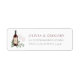 Designed to match our Cheers to Love invitation collection, return address labels feature a bottle of burgundy red wine and two wine glasses on a bed of green watercolor eucalyptus leaves and botanical foliage.