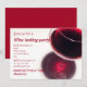 Wine tasting party invitation with a glass of red on a white background with text in a matching red. Fully customizable text.