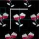 Red Wine Glasses Pattern on Black Fabric