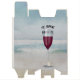 A glass of red wine with a fun quote and a sand dollar on an ocean watercolor abstract background
