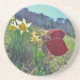 I'm not sure how much moisture these will soak up, haven't had a chance to try them out, but they look good and I like the cork backing. The printing is fine ~ and really looks cool with an artisan's hand made "Hurricane Martini" glass sitting on top of my painting (on the coaster) in my studio.