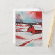 Red winter barn postcard