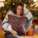 Cute and fun Christmas theme pillow featuring hand drawn illustration of winter botanicals.