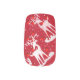 Red background with White Reindeer Christmas pattern Minx Nails. Fun to wear. Fun to give. Great stocking stuffer.