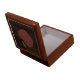This product is made with beautiful mahogany wood, the inside is lined with white satin. The hinges are very sturdy and keeps a tight close on the box. The pattern tile is wonderful It's truly is an exquisite product. This is a gift for anyone and for any occasion. A fine wooden piece to display on your furniture anywhere in your home. The printing accented the design on the box very well. Very pleased with the Font.