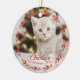 Red Wreath Cat First Christmas Simple Photo Ceramic Ornament
