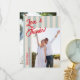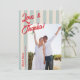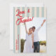 Red Writing Blue Stripes Retro Wedding Photo Thank You Card
