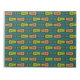 A stylish Large Notepad or Jotter, with a jazzy and original abstract pattern in Bright Red, Yellow-Green and Black on a Teal Background. Part of the Posh & Painterly "Jungle Drums" collection.