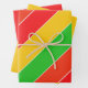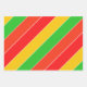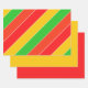 Bright and cheerful striped patterned wrapping paper sheets featuring red, yellow and lime green