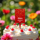 Red Yellow Cake Pick Topper with Red Gold Glitter Confetti Pattern.