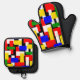 Red, Yellow, Black, Blue and Green Blocks Oven Mitt & Pot Holder Set
