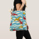 RED YELLOW FLYING CRANES ON WHITE BLUE SEA WAVES TOTE BAG