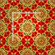 Seamless decorative geometric pattern featuring geometric shapes in red, yellow, orange and black.