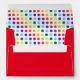 Send out your invitations and cards in style with this cute red custom envelope that features a hand drawn repeating pattern with rainbow colored fuzzy polka dots on the inside as well as a custom printed return address on the top flap. The return address is customizable. To edit the text, click "personalize this template". There is a rain cloud with rainbow colored rain drops adorning the back flap above the return address printed in a yellow font.