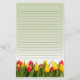 Red Yellow Tulip Flowers Green Background Lined Stationery