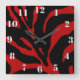 Red Zebra Stripe Animal Print Square Wall Clock