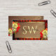 Reddish Brown Tree Bark Wood Grain Initials Floral Business Card