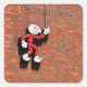 Sticker with photo of sign featuring the character Reddy Kilowatt on a brick wall.