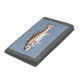This wallet is the perfect gift for the avid sports fishing enthusiast, featuring a digital hand painting of a redfish (red drum) placed on a blue background.