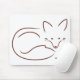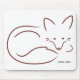 An outline drawing of a curled up red fox, with its head up and looking at you. **Note** Appearing under the red fox illustration, is the taxonomy term "Vulpes vulpes"