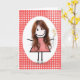 Redhead Birthday Stick Figure Girl On Gingham Card