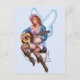 Redhead guitar playing angel in purple and blue with high leather boots on. Art by the late Al Rio. Proceed go to his family.