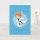 This design features a cute red haired martial arts kid with black belt. On blue decorative background.
