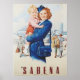 It is a pretty picture. The blue uniform sets off the red hair. Sabena is no longer in business. It was a Belgian airline.