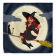 REDHEADED HALLOWEEN WITCH FLYING ON BROOMSTICK WITH CAT AND FULL MOON