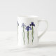 Classic well-loved Redoute Three Blue Iris botanical illustration on an elegant bone china mug.